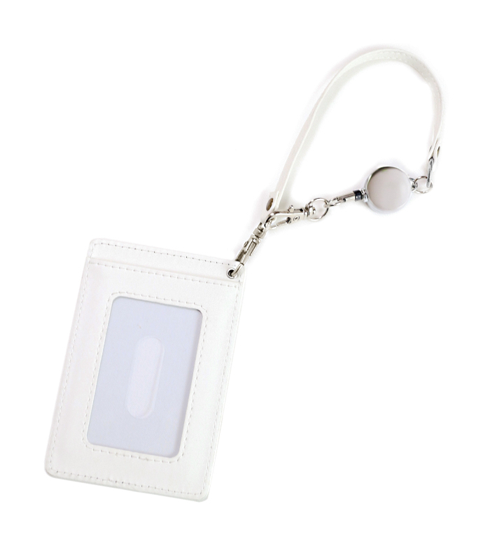 社員証や名刺を入れるのに最適なクリア窓付き1ポケットタイプで、便利なリールストラップ付きです。