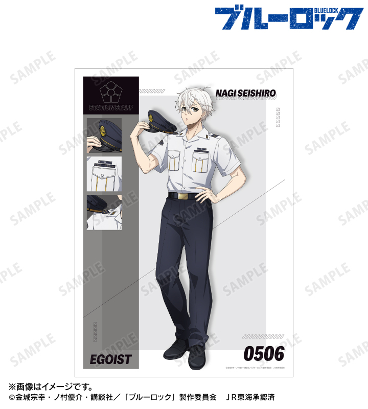 TVアニメ『ブルーロック』×「推し旅/JR東海」のコラボレーションアイテム「描き下ろし 凪 誠士郎 駅員ver. A3マット加工ポスター」の登場です。
