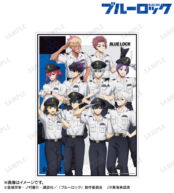TVアニメ『ブルーロック』×「推し旅/JR東海」のコラボレーションアイテム「描き下ろし 集合 駅員ver. A3マット加工ポスター」の登場です。