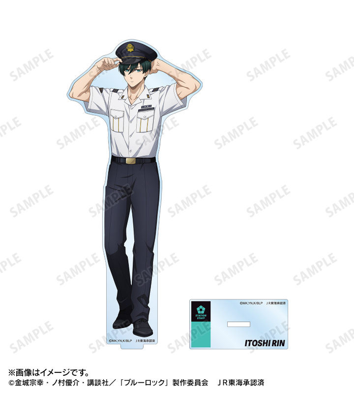 TVアニメ『ブルーロック』×「推し旅/JR東海」のコラボレーションアイテム「描き下ろし 糸師 凛 駅員ver. BIGアクリルスタンド」の登場です。