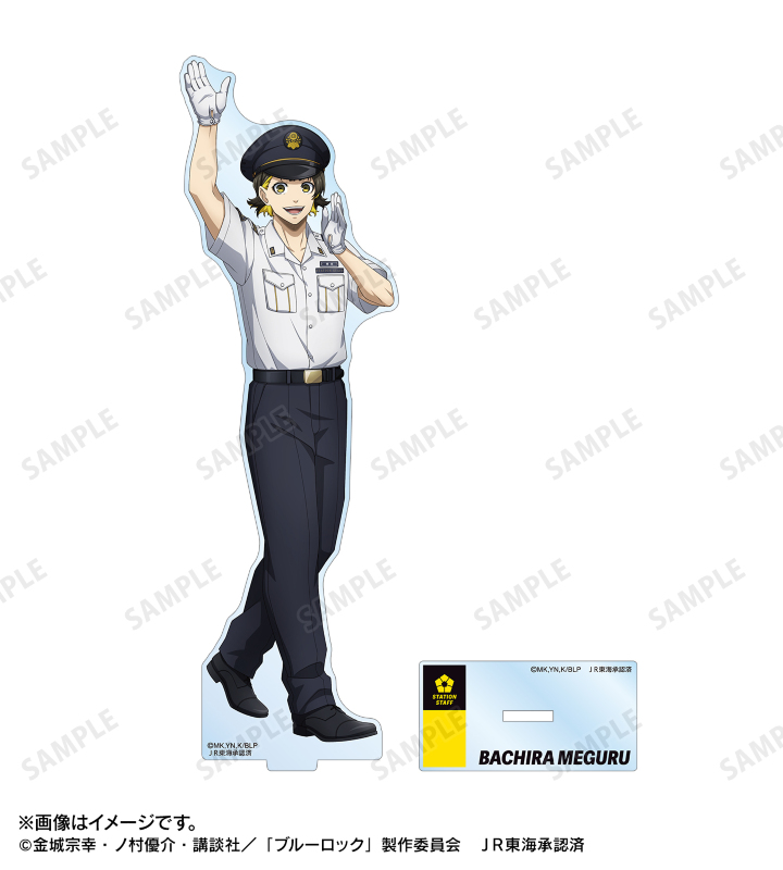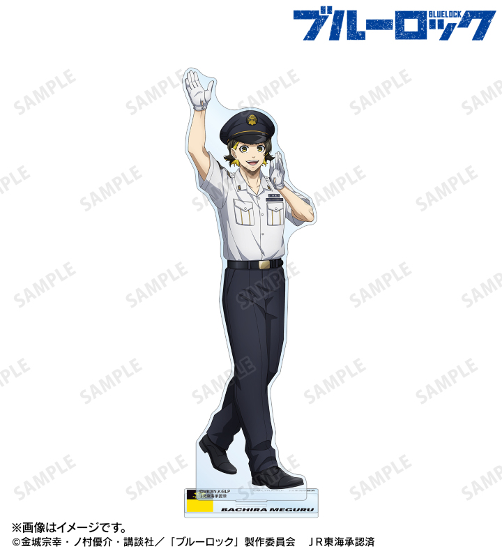 TVアニメ『ブルーロック』×「推し旅/JR東海」のコラボレーションアイテム「描き下ろし 蜂楽 廻 駅員ver. BIGアクリルスタンド」の登場です。
