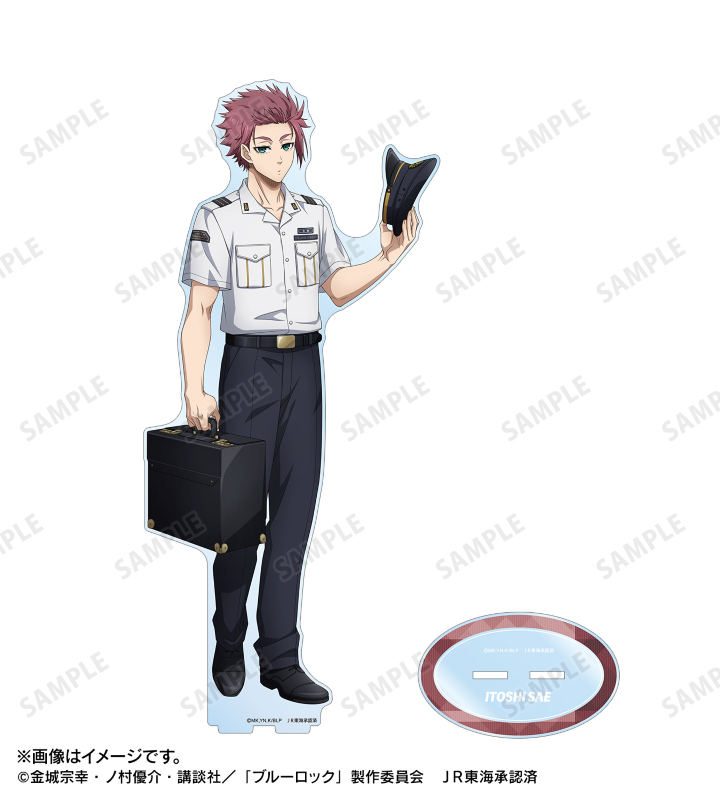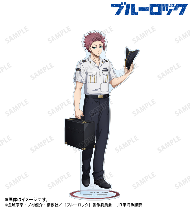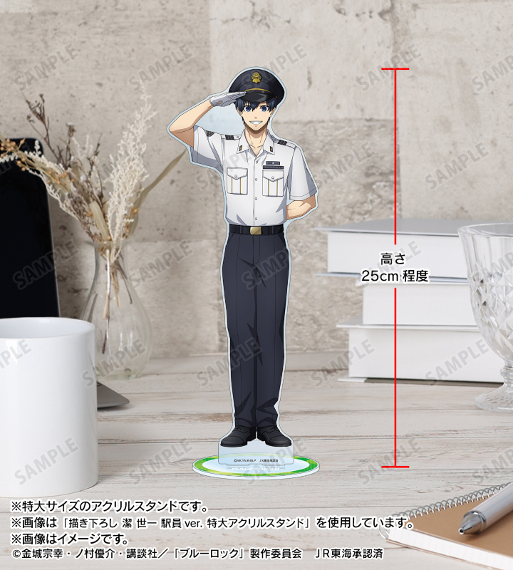 TVアニメ『ブルーロック』×「推し旅/JR東海」のコラボレーションアイテム「描き下ろし 糸師 冴 駅員ver. 特大アクリルスタンド」の登場です。