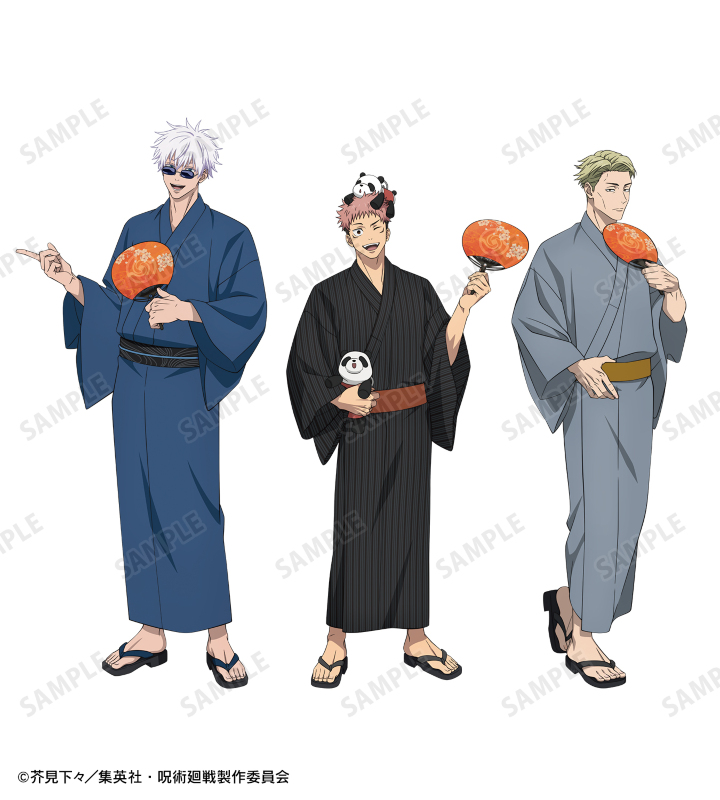 TVアニメ「呪術廻戦」×「浅草花やしき」のコラボレーションアイテム「描き下ろし 集合 浴衣ver. うちわ」の登場です。