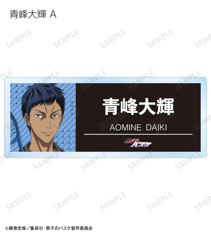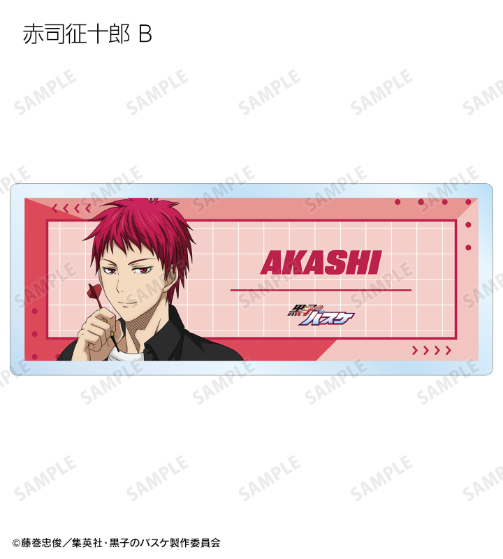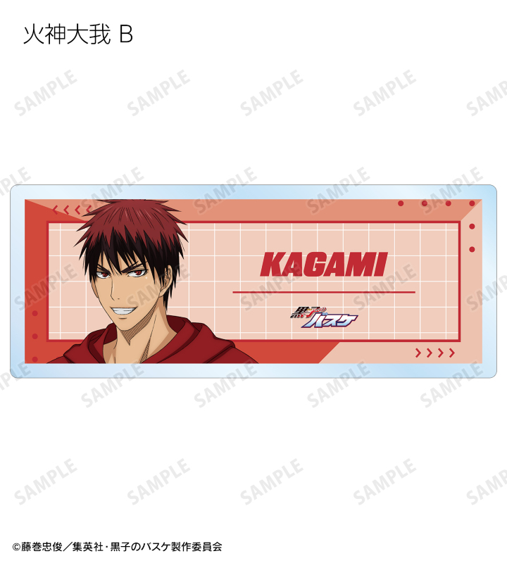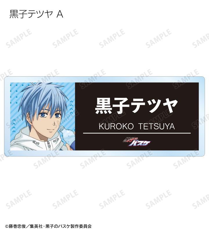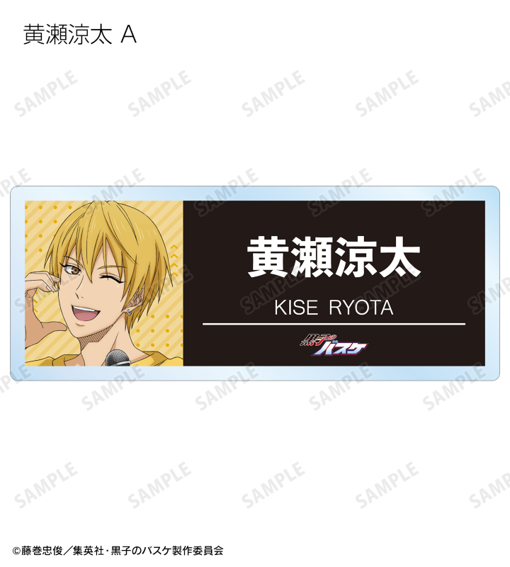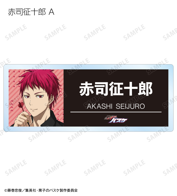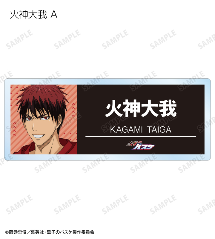 黒子テツヤ、火神大我、黄瀬涼太、緑間真太郎、青峰大輝、紫原 敦、赤司征十郎の描き下ろしイラストをアクリルネームプレートに仕上げました。