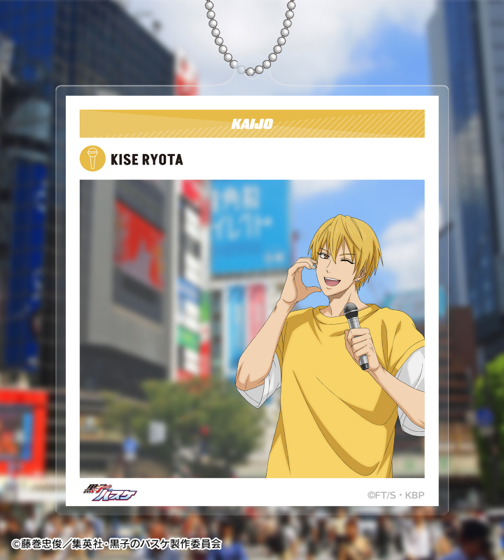 『黒子のバスケ』×「ROUND1」のコラボレーションアイテム「描き下ろし 黄瀬涼太 スポーツホリデーver. SNS風BIGアクリルキーホルダー」の登場です。