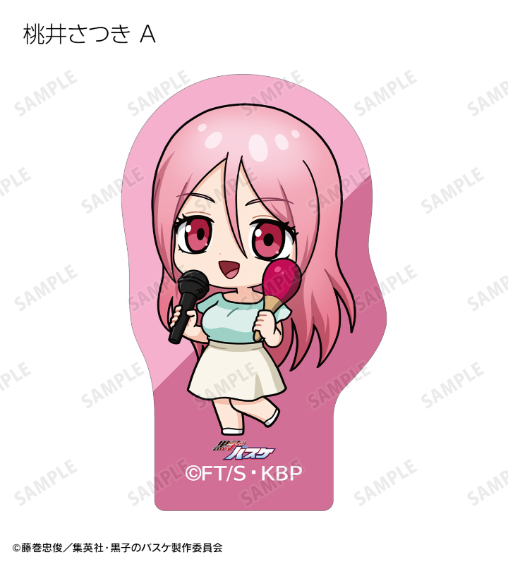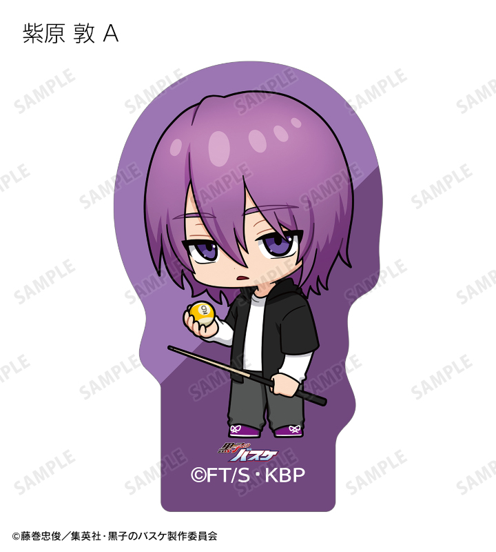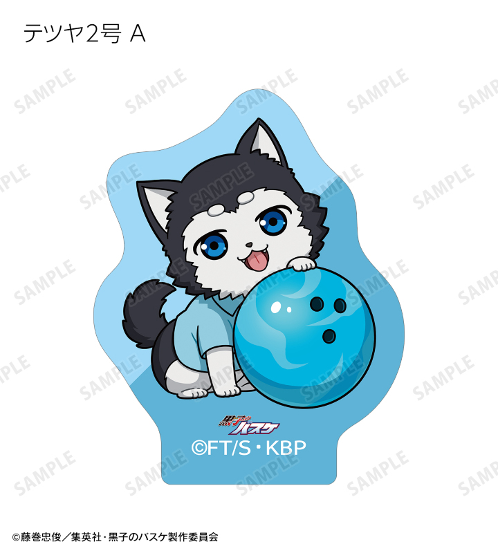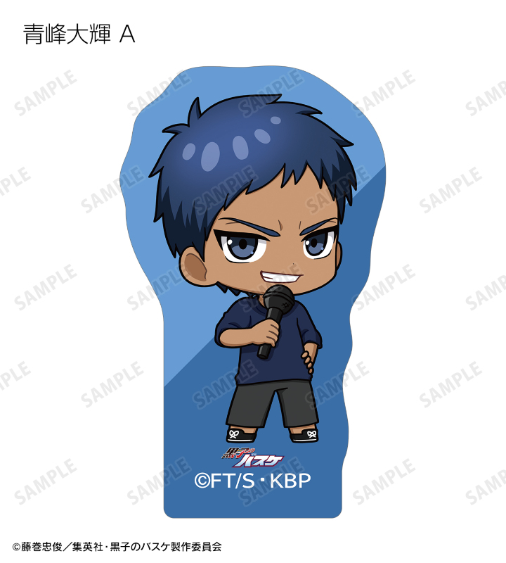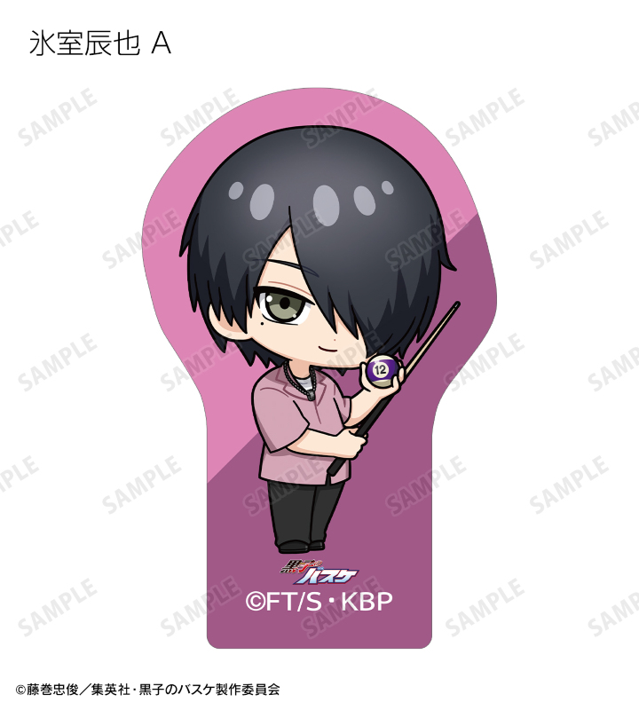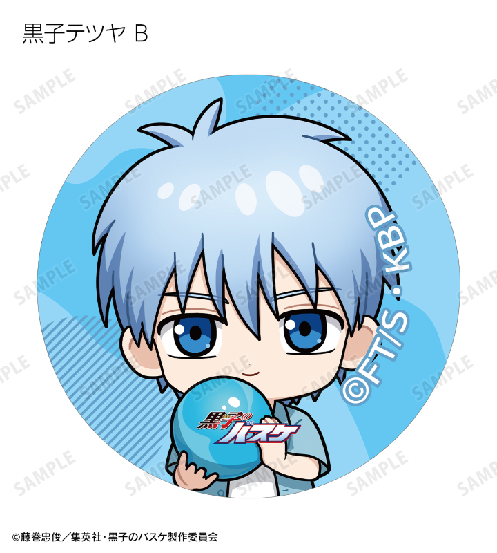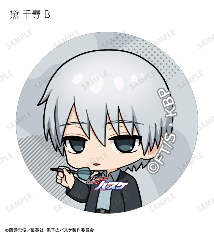 黒子テツヤ、火神大我、テツヤ2号、黄瀬涼太、笠松幸男、緑間真太郎、高尾和成、青峰大輝、桃井さつき、紫原 敦、氷室辰也、赤司征十郎、黛 千尋、花宮 真の描き起こしちびキャライラストをメインにデザインし、フレークシールに仕上げました。