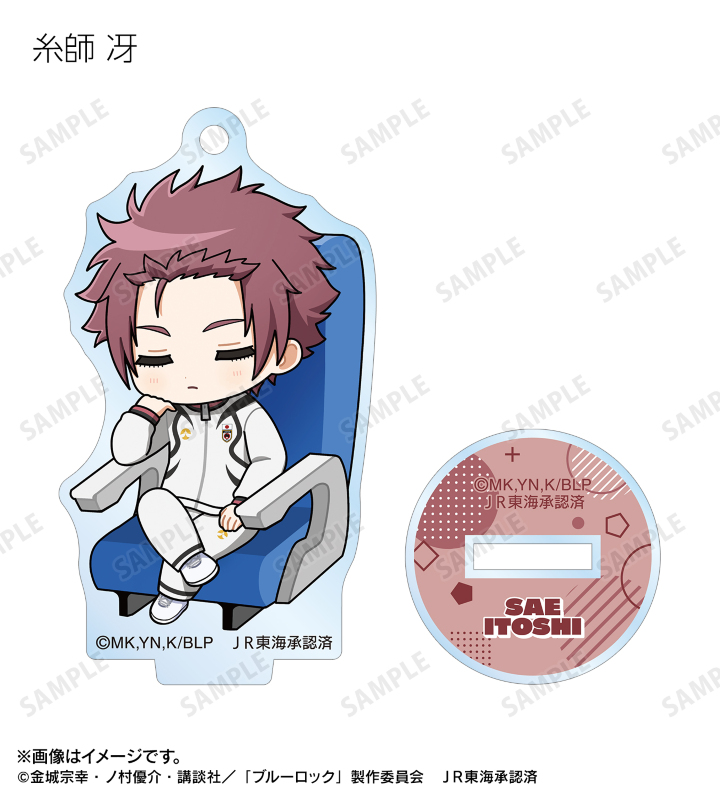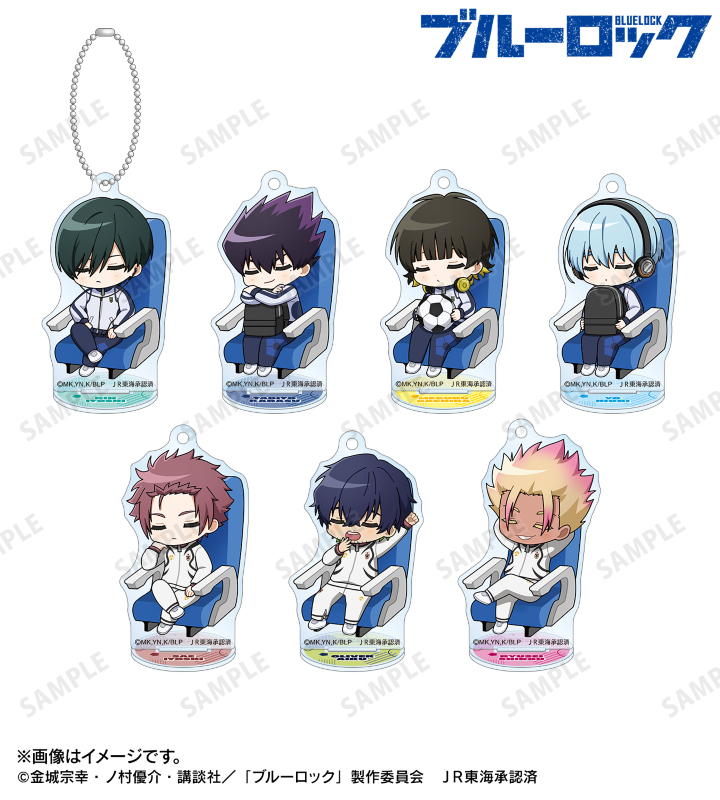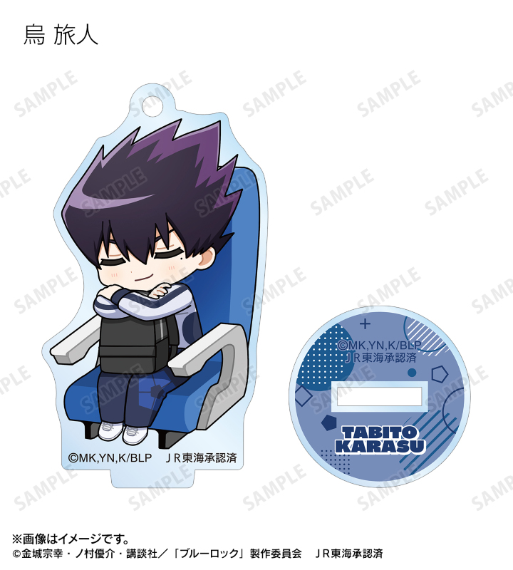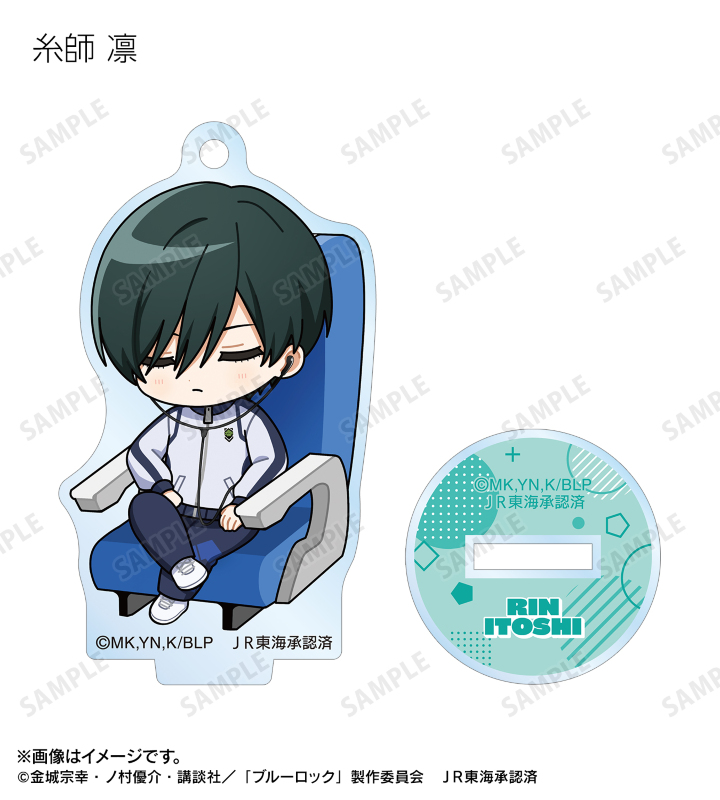 TVアニメ『ブルーロック』×「推し旅/JR東海」のコラボレーションアイテム「トレーディング ちびキャラ 新幹線でうたたねver. アクリルスタンドキーホルダー ver.B」の登場です。