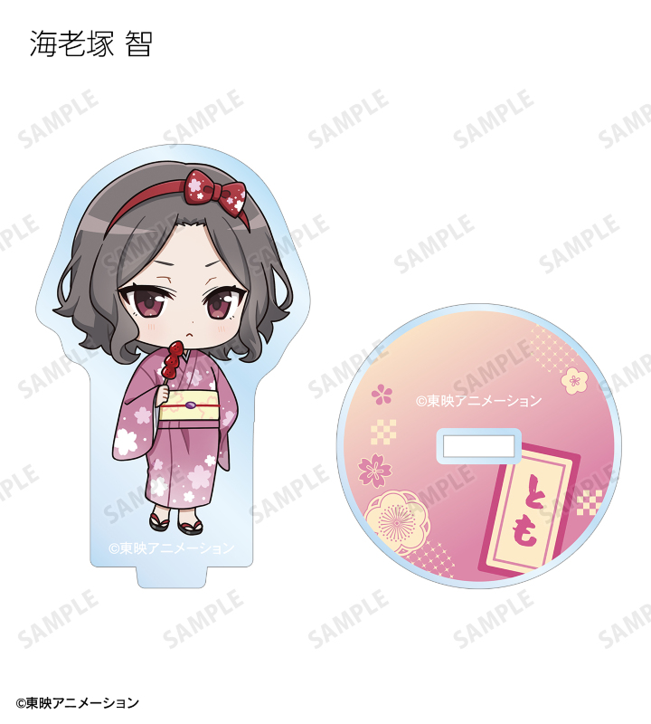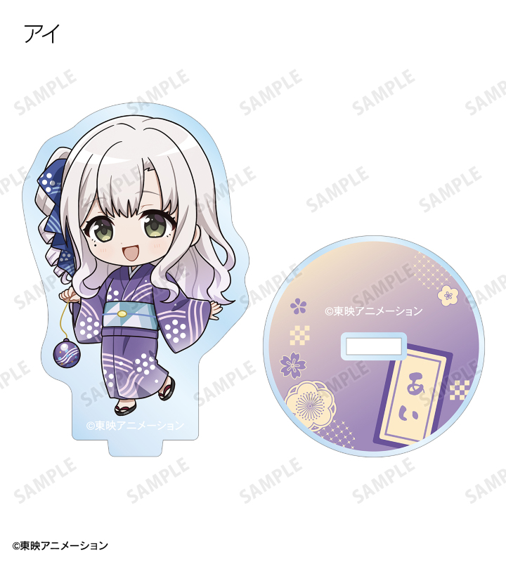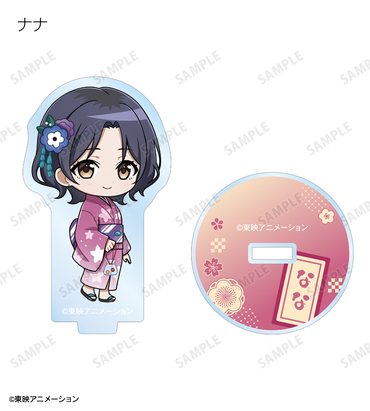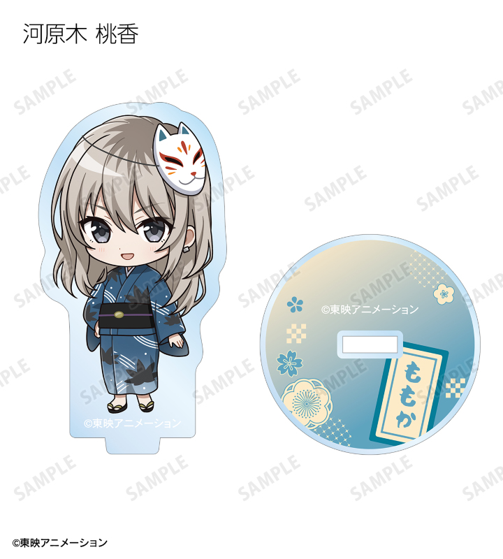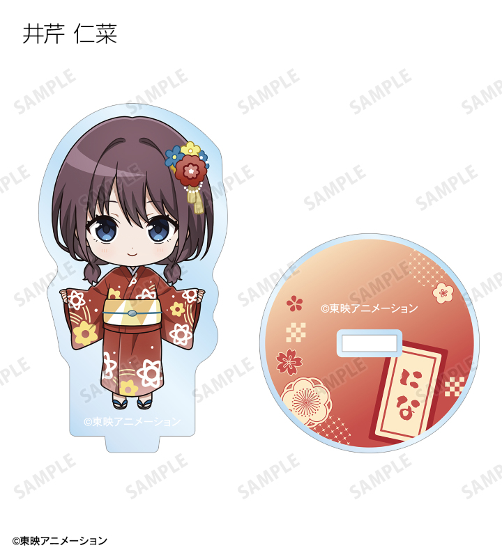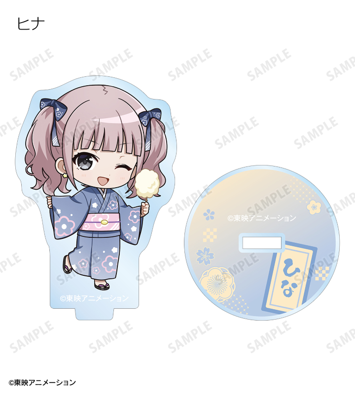 井芹 仁菜、河原木 桃香、安和 すばる、海老塚 智、ルパ、ヒナ、リン、ナナ、アイの描き起こしちびキャライラストをメインにデザインし、アクリルスタンドに仕上げました。