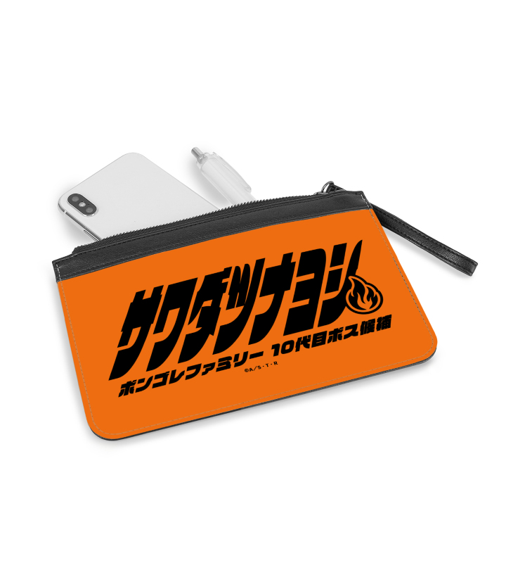 沢田 綱吉のイメージモチーフと肩書きを、PUレザーフラットポーチに仕上げました。