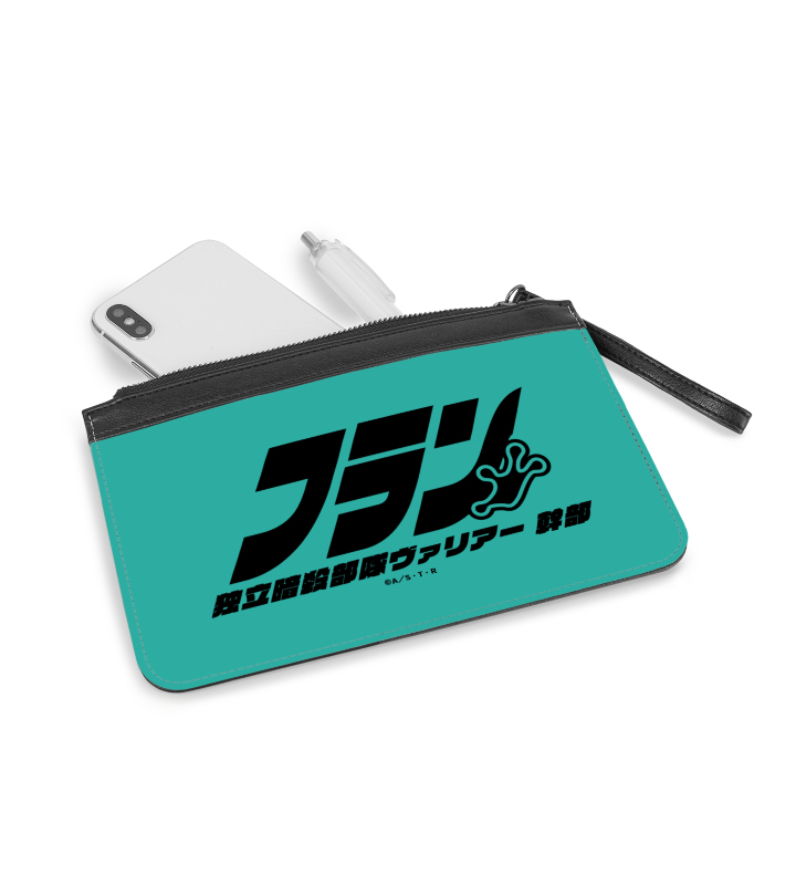 フランのイメージモチーフと肩書きを、PUレザーフラットポーチに仕上げました。