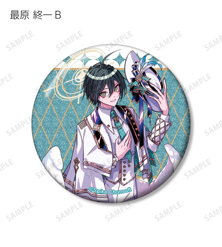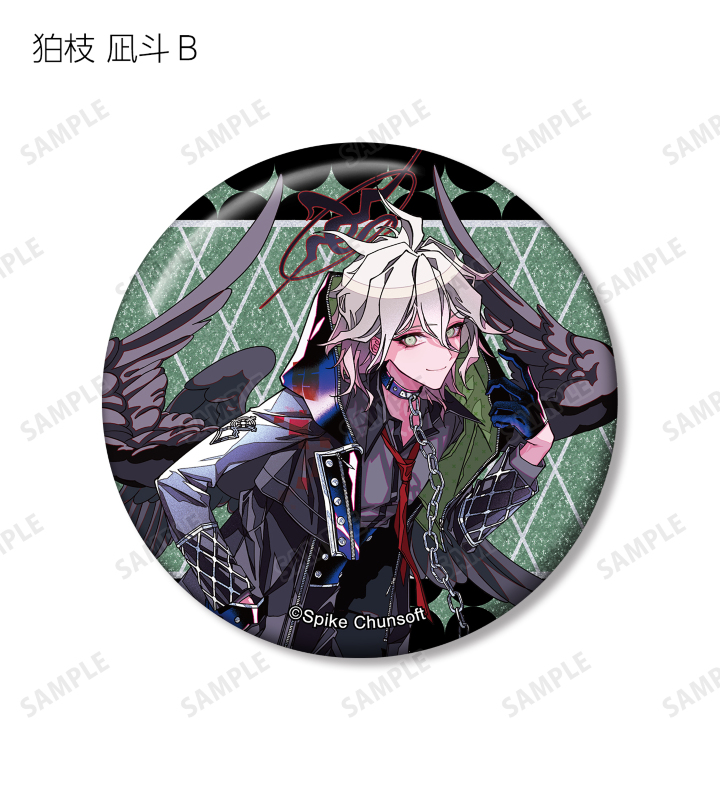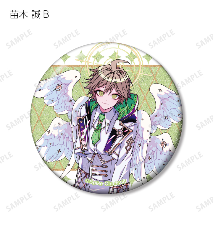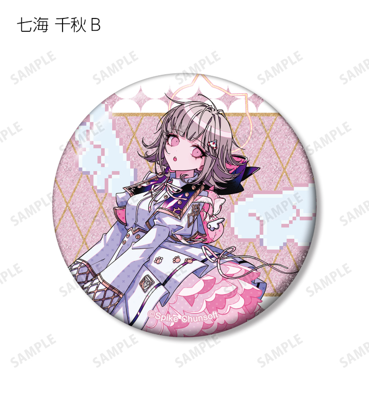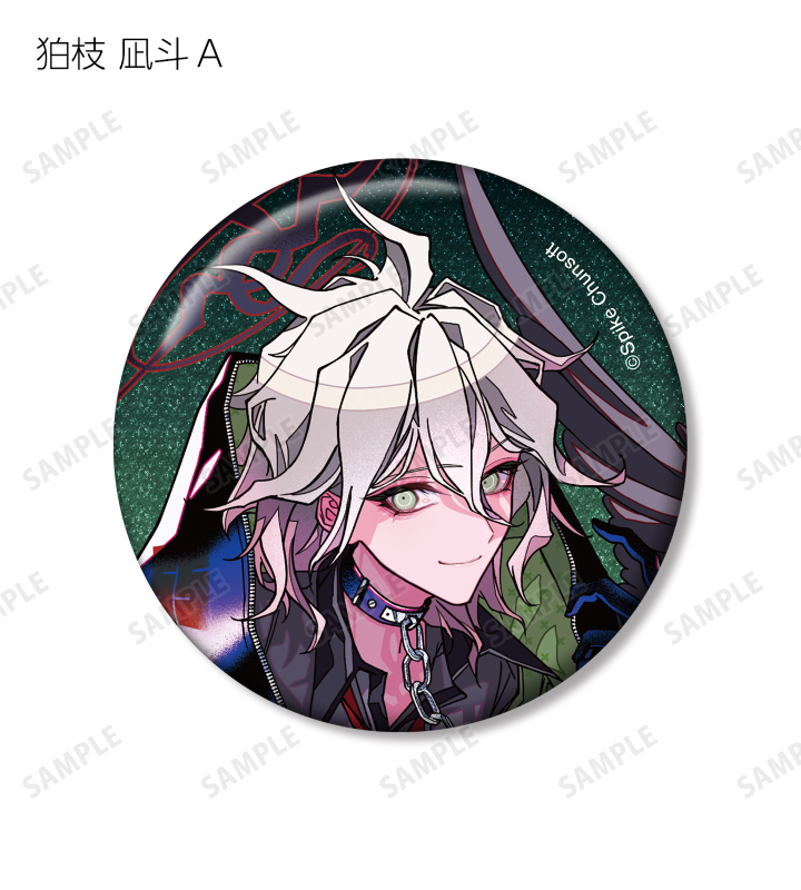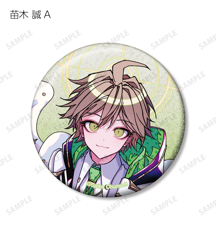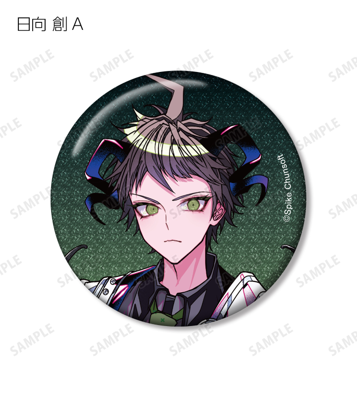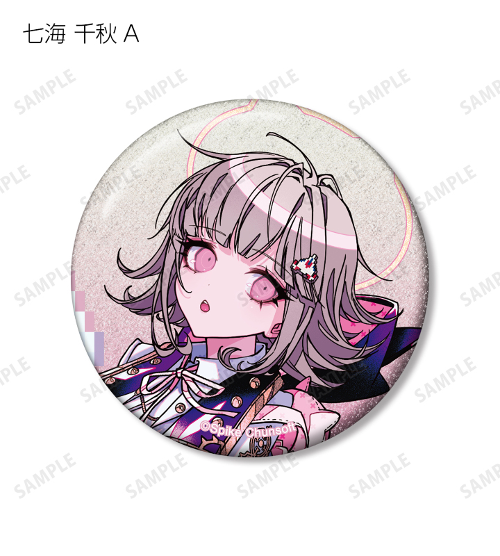 めつぶしあんこ先生描き下ろしイラストの苗木 誠、霧切 響子、十神 白夜、日向 創、狛枝 凪斗、七海 千秋、赤松 楓、王馬 小吉、最原 終一をグリッター加工を施した缶バッジに仕上げました。