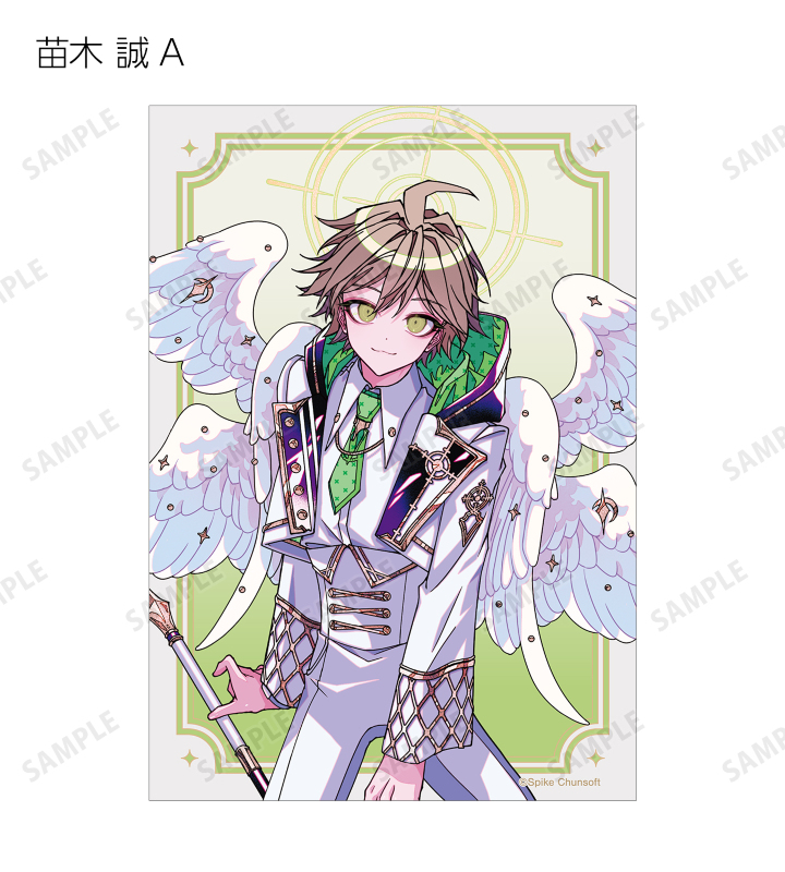 めつぶしあんこ先生描き下ろしイラストの苗木 誠、霧切 響子、十神 白夜、日向 創、狛枝 凪斗、七海 千秋、赤松 楓、王馬 小吉、最原 終一をブロマイドに仕上げました。