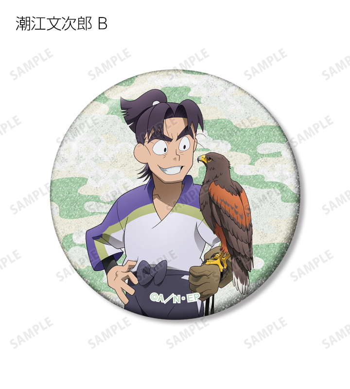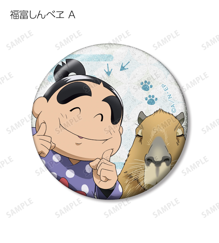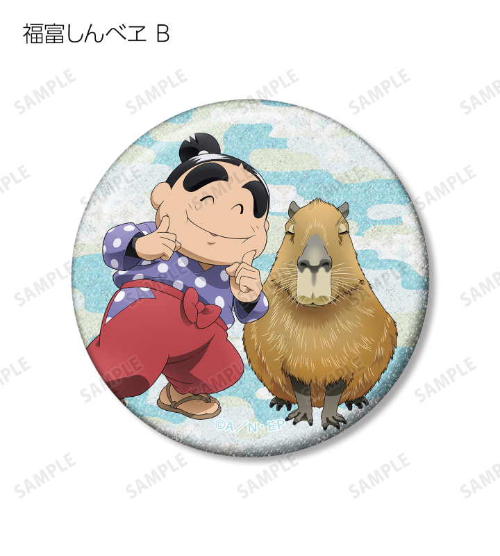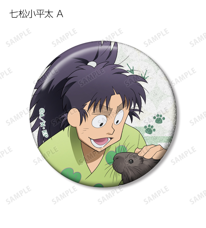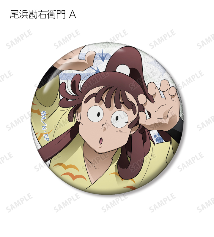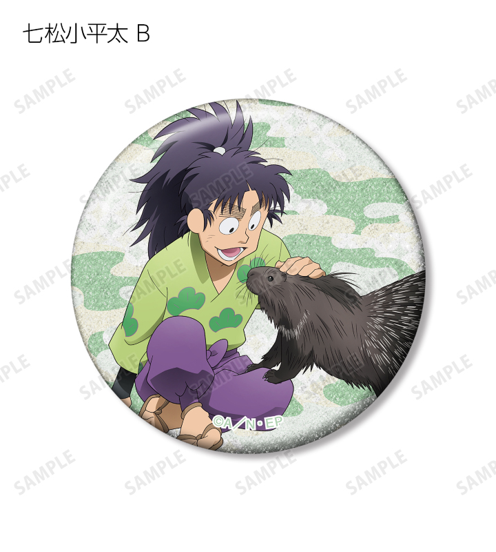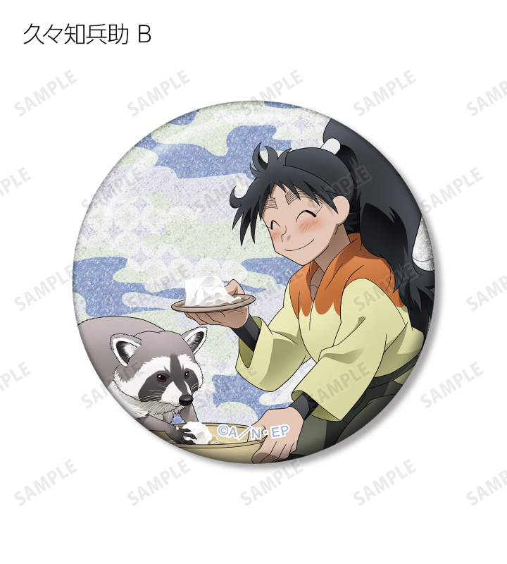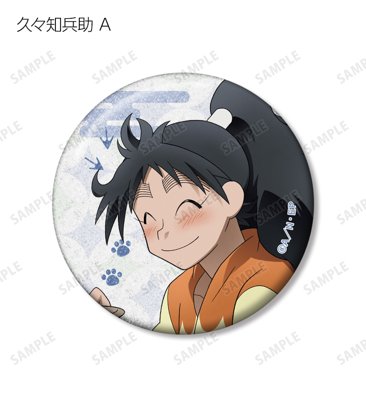 福富しんべヱ、土井半助、ヘムヘム、久々知兵助、尾浜勘右衛門、潮江文次郎、中在家長次、七松小平太の描き下ろしイラストをグリッター加工を施した缶バッジに仕上げました。