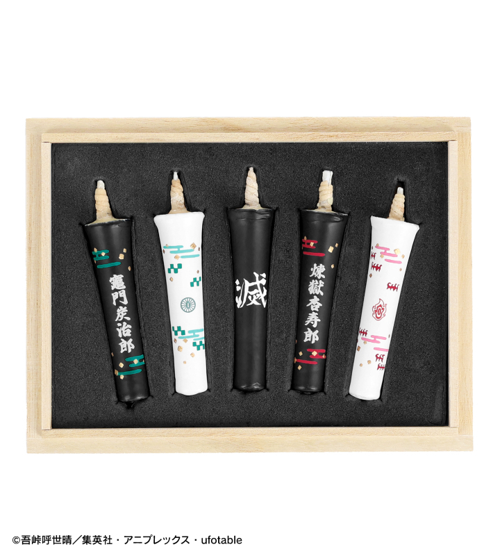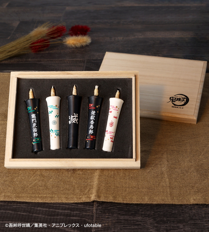 アニメ「鬼滅の刃」から「京ローソク」のオリジナルアイテム「京ローソク桐箱入り5本セット」の登場です。