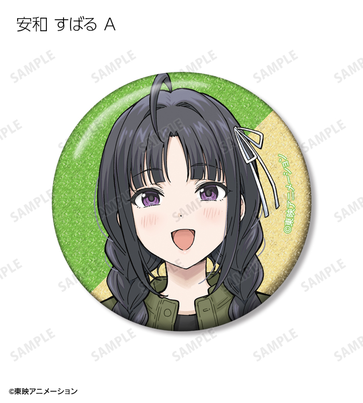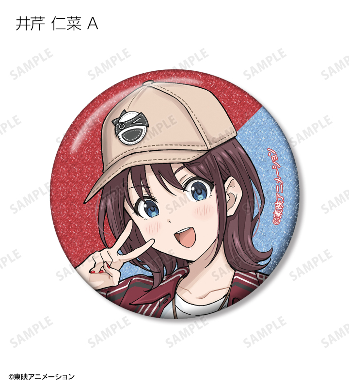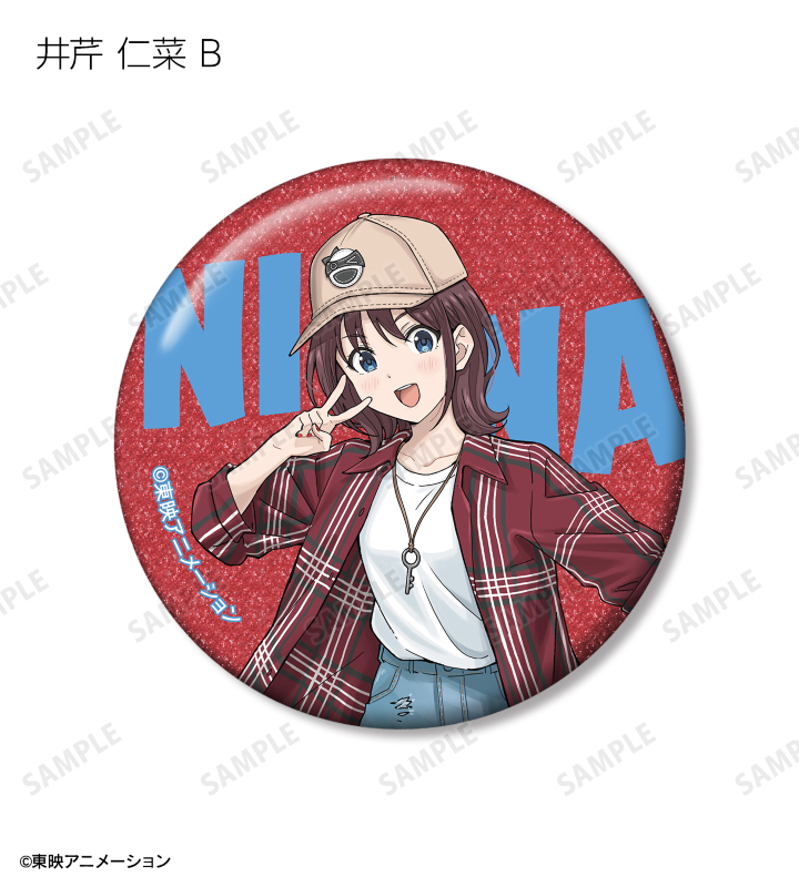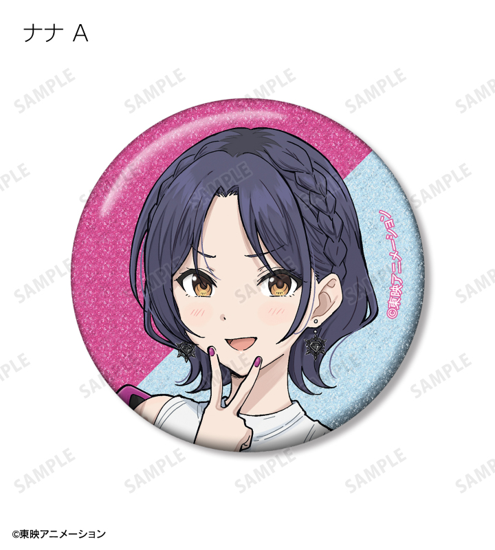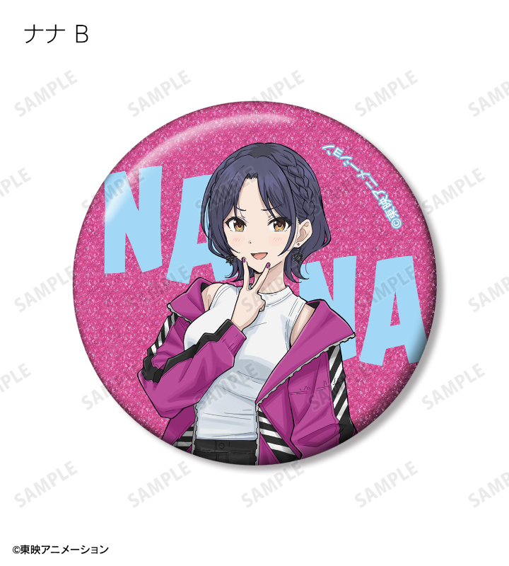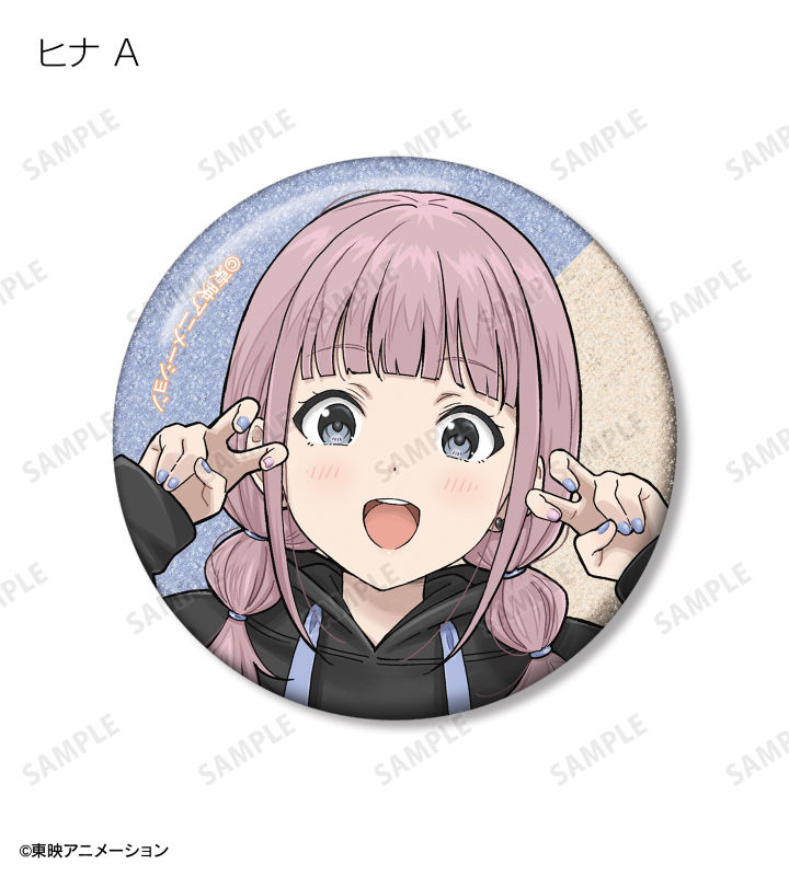 井芹 仁菜、河原木 桃香、安和 すばる、海老塚 智、ルパ、ヒナ、リン、ナナ、アイの描き下ろしイラストをグリッター加工を施した缶バッジに仕上げました。