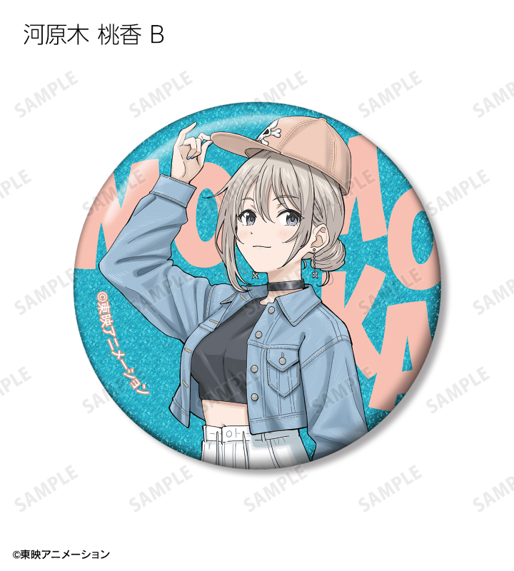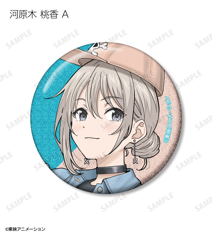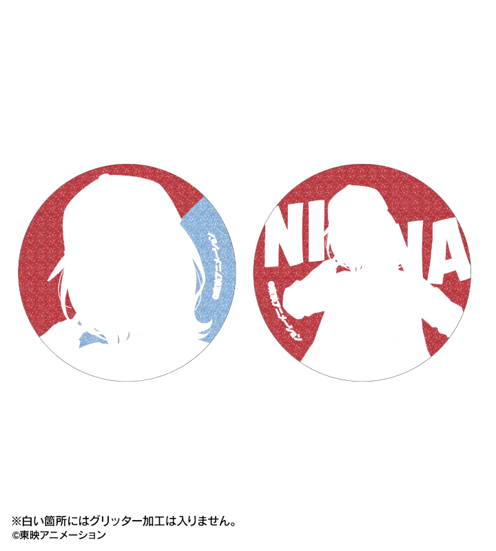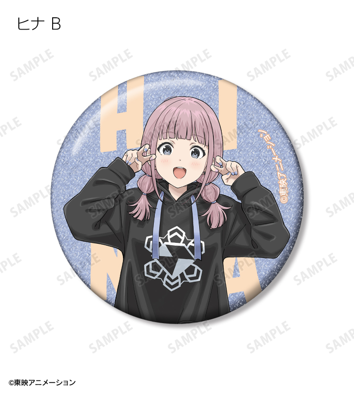 井芹 仁菜、河原木 桃香、安和 すばる、海老塚 智、ルパ、ヒナ、リン、ナナ、アイの描き下ろしイラストをグリッター加工を施した缶バッジに仕上げました。 ※2025年10月29日までに