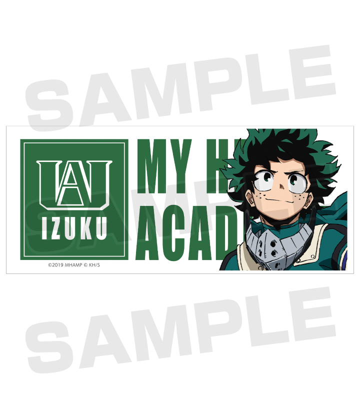 緑谷出久と雄英高校の校章、名前、作品タイトルを合わせて、キャラクターからイメージしたカラーリングで仕上げました。