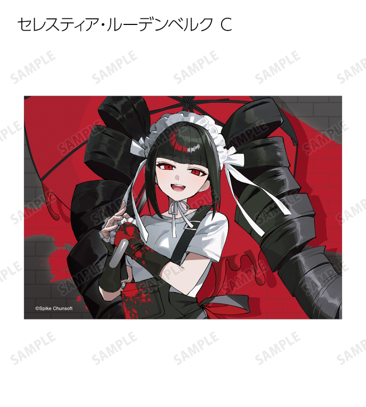 さくしゃ2先生描き起こしイラストの苗木誠、霧切響子、セレスティア・ルーデンベルク、不二咲千尋、日向創、狛枝凪斗、七海千秋、罪木蜜柑、赤松楓、王馬小吉、最原終一、百田解斗をブロマイドに仕上げました。