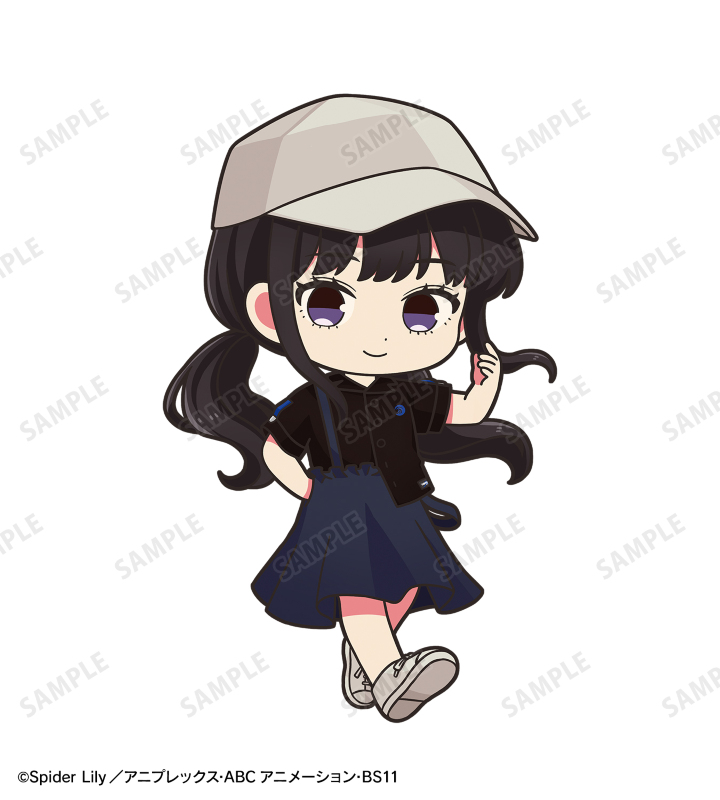 ちびキャラの井ノ上たきなが着用している、大きめのボタンが特徴のハーフスリーブシャツです。