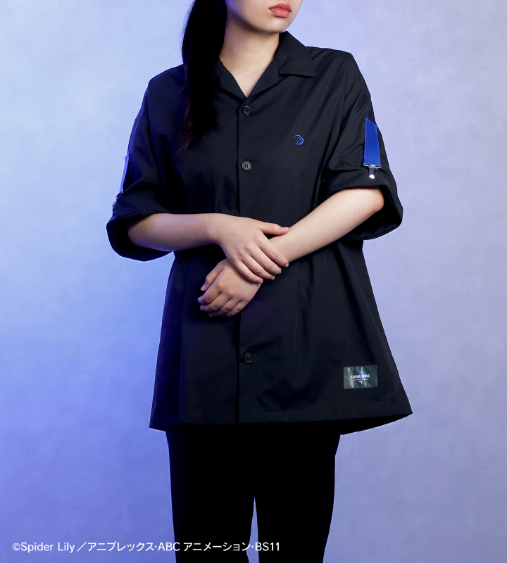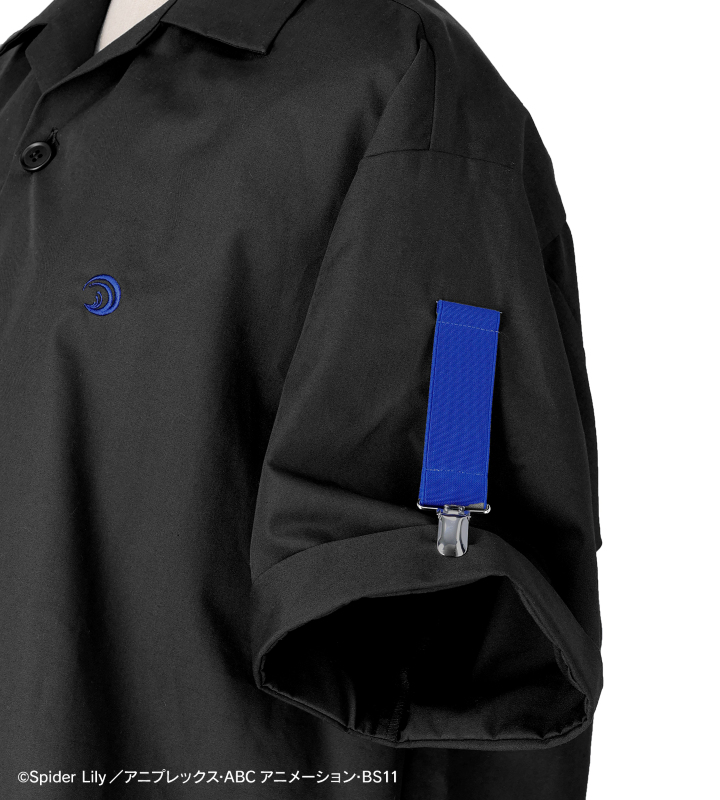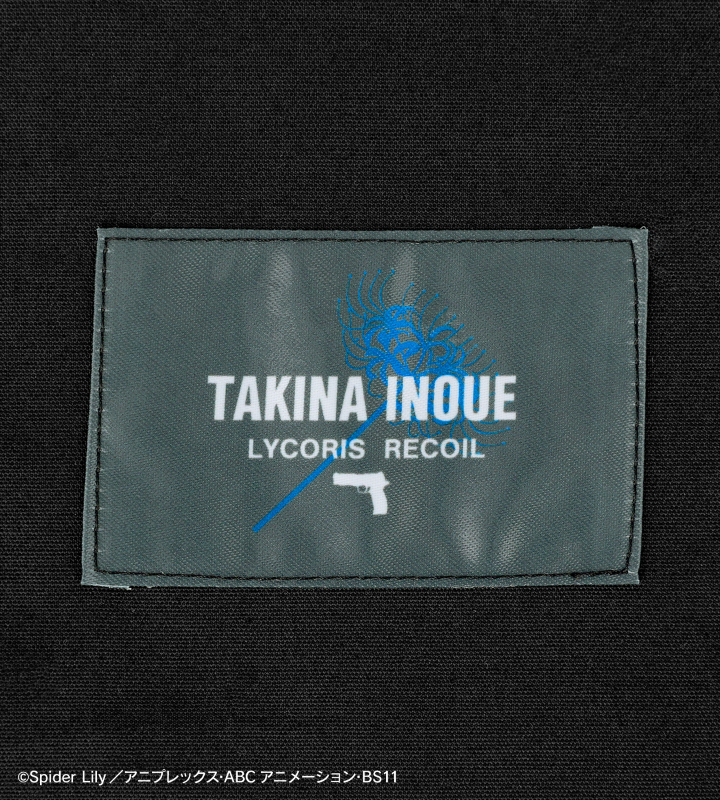 袖部分には、井ノ上たきなをイメージしたカラーのアームクリップをアクセントとして取り付け、胸元にはリコリスの校章を刺繍で再現しました。