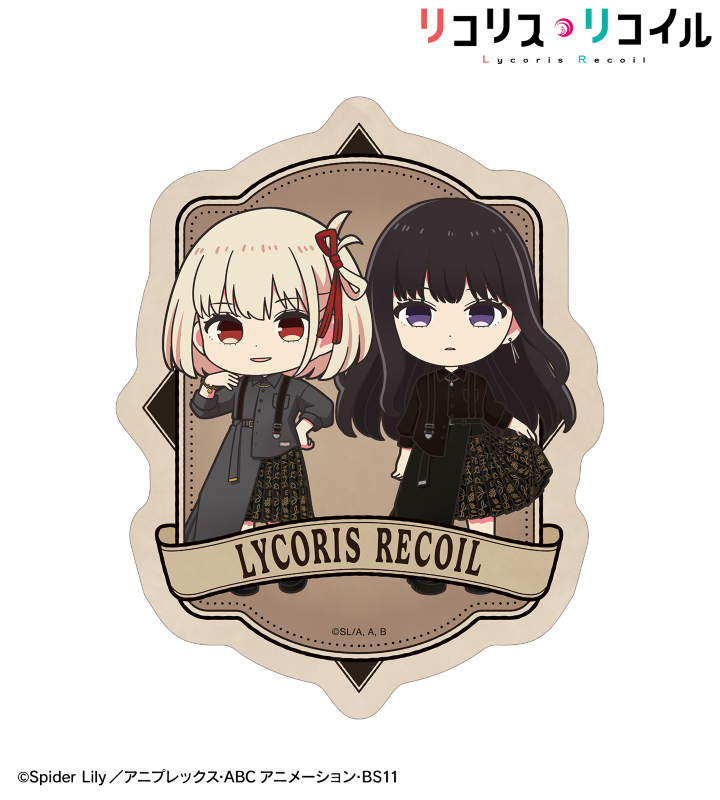 TVアニメ「リコリス・リコイル」×「meagratia」のコラボレーションアイテム「meagratiaコラボ 錦木千束&井ノ上たきな ちびキャラ ダイカットステッカー ver.A」の登場です。