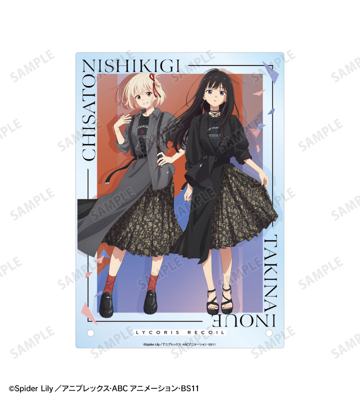 錦木千束、井ノ上たきなの描き下ろしイラストをA5サイズのアクリルパネルに仕上げました。