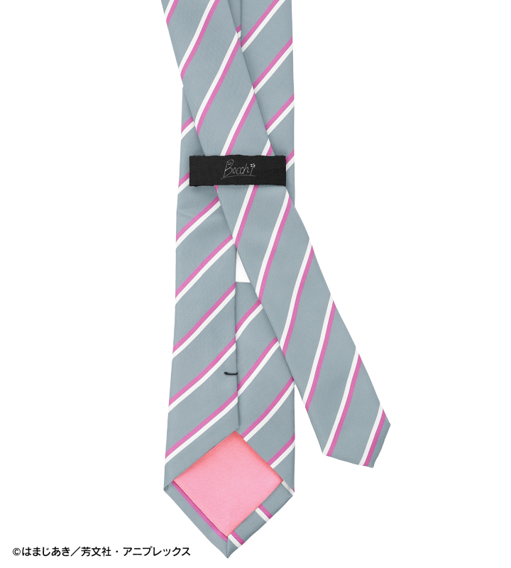 後藤ひとりをイメージした、ピンクとホワイトのカラーのストライプに、ワンポイントでツチノコぼっちのイラストをデザインし、ネクタイに仕上げました。