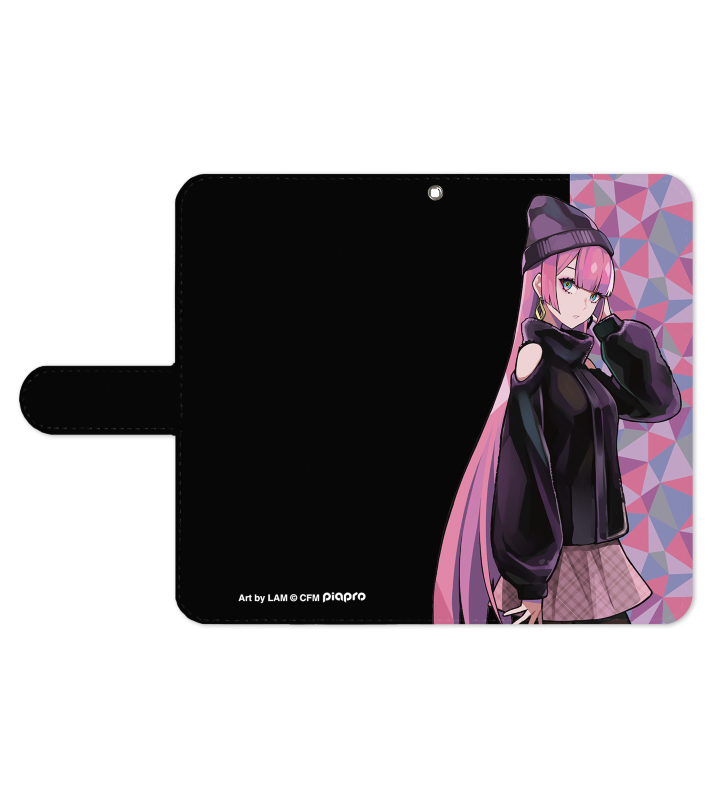 初音ミクたち『ピアプロキャラクターズ』×イラストレーター「LAM」のコラボレーションアイテム「巡音ルカ Street Style Art by LAM 手帳型スマホケース」の登場です。