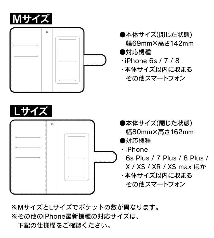 iPhone6s Plus/7 Plus/8 Plus/X/XS/XS MaX/XR/11/11 Pro/11 Pro MaX相当の大きさになります。